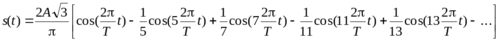 Здесь для упрощения в квадратных скобках приведены относительные амплитуды гармоник трехуровневого периодического колебания.