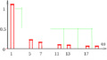 ис. 3.13 Модуль спектра трехуровневого колебания (по оси абсцисс указаны номера гармоник)
