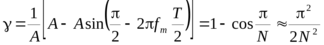 Рис. 3.50 Оценка погрешностиПоэтому при линейной интерполяции наибольшая относительная погрешность восстановления синусоиды с частотой fm будет: