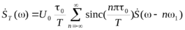 Отметим, что энергия сигнала s(t), выраженного через -функции, бесконечно велика, соответственно и энергия спектра Sт(), определенного в Error: Reference source not found бесконечно велика. При использовании же реальных тактовых импульсов с конечной энергией спектр Sт() при убывает.