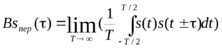 При таком определении корреляционная функция приобретает размерность мощности, причем Bsпер(0) равна средней мощности сигнала. В виду периодичности сигнала s(t) усреднение произведения s(t)s(t+) или s(t)s(t-) по бесконечно большому отрезку T должно совпадать с усреднением по периоду T1. Поэтому выражение Error: Reference source not found можно заменить выражением:
