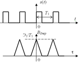 Каждый из импульсов функции Bsпер() совпадает по форме с корреляционной функцией одиночного импульса из периодической последовательности s(t). Однако в данном случае максимальные ординаты Bsпер() равны не энергии, а средней мощности сигнала s(t), т.е. величине