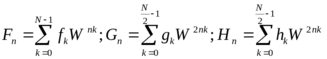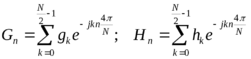 Применим ДПФ к подпоследовательностям gi и hi, содержащим по N/2 членов: