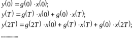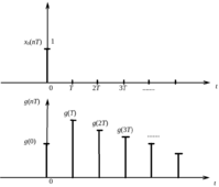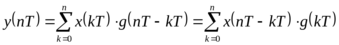 Под действием первого элемента x(0) на выходе фильтра формируется последовательность x(0)g(kT), при действии x(T) - формируется последовательность x(T)g(kT), сдвинутая на T вправо, и т.д. В результате на выходе получим последовательность y(nT), причем