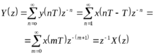 Пусть известно Z-преобразование сигнала x(nT)X(z). Найдем Z-преобразование сигнала y(nT):