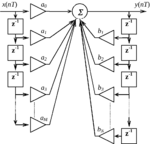 Такое преобразование осуществляется с помощью рекурсивного ЦФ N-го порядка. Связь между выходным сигналом y(nT) и промежуточным (nT) определяется выражением: