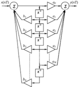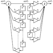 y(nT)=b1y(nT-T)b2y(nT-2T)+...+bNy(nT-NT)+