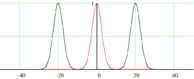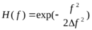 Гауссовский имульс c центром в f=0, единичной амплитуды и полушириной f, которая определяется по уровню 1/e от амплитуды импульса (0.606), описывается выражением: