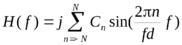 Зная период T частотной характеристики (равный по-прежнему fd) и используя связь спектральной плотности с коэффициентами ряда Фурье Сn по (3.58), находим Сn и H(f):
