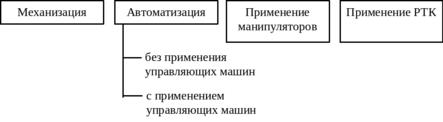 Исключение человека из сферы труда обеспечивается при использовании РТК, создание которых требует высоко научно-технического потенциала на этапе как проектирования, так и на этапе изготовления и обслуживания, отсюда значительные капитальные затраты.