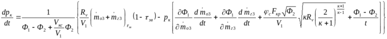 Решая полученное выражение относительно изменения давления в камере сгорания по времени, получим: