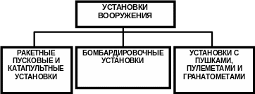 В состав установок вооружения входят: ракетные пусковые и катапультные установки; бомбардировочные установки; установки с пушками, пулеметами и гранатометами (рис. №1.3).
