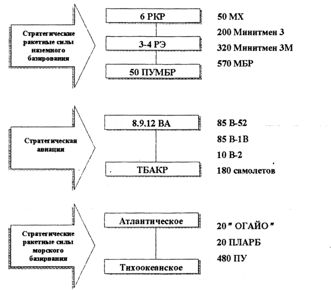 Военные аналитики США предполагают, что в дальнейшем, в 21 веке стратегические наступательные силы (СНС) будут иметь 3 компонента (Рис.3):