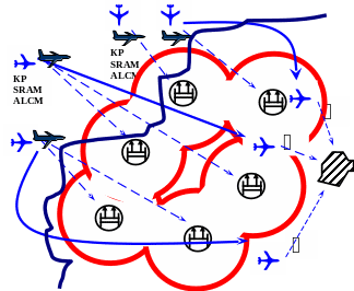 Наиболее характерным для СА будут действия небольших групп и одиночных самолетов на различных высотах, с массированным применением средств радиоэлектронной борьбы и ракет класса "воздух-земля".