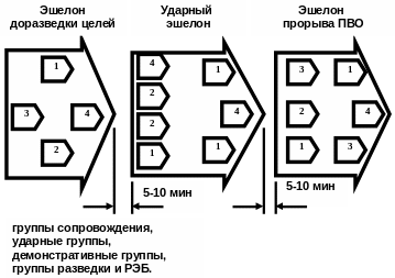 США планируют использовать ТА, ПА и АА в различных вариантах ядерных и безъядерных войн с широким использованием высокоточного оружия, действуя во всем диапазоне высот и скоростей. При выполнении боевой задачи массированный удар будет включать эшелон прорыва ПВО.