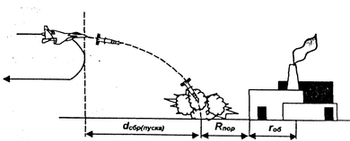 При применении противником управляемых ракет или управляемых авиабомб (рис.1.7) удаление РВЗ можно определить следующим образом: