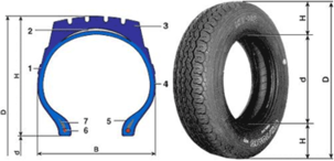 Размеры и маркировка шин поставлены на их боковой поверхности. Основными размерами шины (рис.) являются ширина В и высота Н профиля, посадочный d и наружный D диаметры.