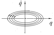 Состояние системы в любой момент времени определяется на фазовой плоскости изображающей точкой. В процессе движения величины q и непрерывно изменяются и, соответственно, меняется положение изображающей точки на фазовой плоскости. Геометрическое место изображающих точек для заданного движения называется фазовой траекторией. Очевидно, что разные движения будут иметь разные фазовые траектории: