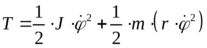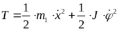 Определим кинетическую энергию системы, которая в данном случае определяется энергией поступательного движения рейки массой m1 и энергией вращения цилиндра массой m2:
