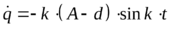 В этом выражении k>0, A>d по условию движения. Таким образом, обобщенная скорость будет отрицательной пока sin(kt)>0. Как известно, синус меняет знак при значениях угла , где j – все натуральные числа. Таким образом,