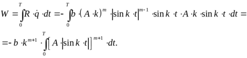 Опять-таки, опираясь на принятое допущение о медленном изменении амплитуды, при определении работы сил трения можно считать A=const. В этом случае: