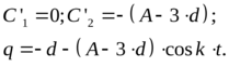 Используя принятые начальные условия движения системы, определим значения постоянных интегрирования: