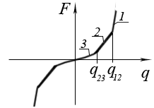Пусть кусочно-линейная характеристика механической системы симметрична и состоит из трех участков, границы которых определяются значениями обобщенной координаты и :