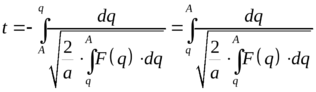Если характеристика восстанавливающей силы симметричная, то время перехода системы из начального положения в положение равновесия ( ) составит четверть периода, то есть: