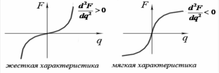 Если коэффициент обобщенной жесткости увеличивается с возрастанием q, то есть , то характеристика восстанавливающей силы называется жесткой. Если же уменьшается с возрастанием q, то говорят, что восстанавливающая сила имеет мягкую характеристику.