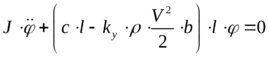 При отклонении пластинки возникают аэродинамические давления, зависящие от угла отклонения φ от положения равновесия. Используя зависимость из аэродинамики, равнодействующую давления можно разложить на две составляющие: