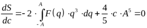 которая является функцией параметра c. Поэтому вполне естественно найти минимум этой функцию. То есть определить такое значение параметра c, при котором функция S имела бы минимальное значение.