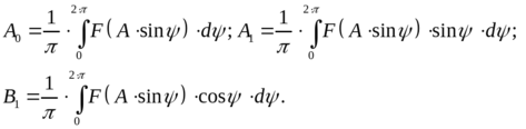 Следует отметить, что коэффициенты Фурье обладают рядом свойств. Для четных функций Aj=0, где j=1,2,… . Для нечетных функций A0=0 и Bj=0, где j=1,2,… . Кроме того, если в нелинейной функции отсутствует постоянная составляющая, то A0=0. Для функций, не имеющих гистерезисных петель, коэффициент B1=0.
