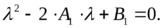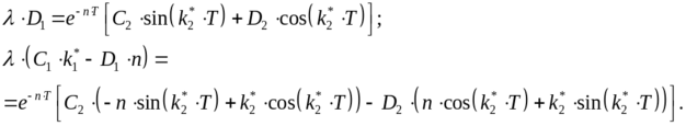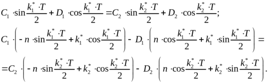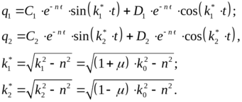 Эти четыре уравнения образуют систему, однородную относительно постоянных . Эти коэффициенты будут отличны от нуля, если определитель, составленный из коэффициентов системы, равен нулю. Развернув этот определитель, получим квадратное уравнение:
