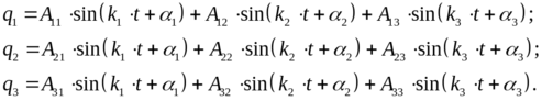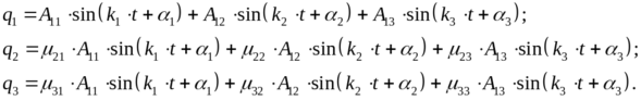 Так, для системы с тремя степенями свободы общее решение имеет вид: