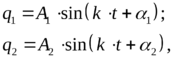 Физически формы колебаний системы можно получить следующим образом. Соответствующим подбором начальных условий можно добиться того, что все обобщенные координаты будут колебаться с одной из собственных частот.
