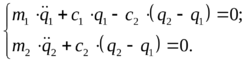 В качестве примера определения собственных форм колебаний механической системы рассмотрим случай, для которого у нас уже составлены дифференциальные уравнения: