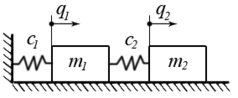 Примем за единицы измерения амплитуд амплитуды колебаний первой обобщенной координаты. В этом случае . Подставим значение первой собственной частоты в любое из двух уравнений исходной алгебраической системы уравнений: