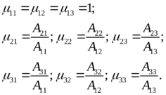 Эта запись показывает, что амплитуды колебаний системы отнесены к амплитудам колебаний первой координаты, то есть за единицы измерения приняты амплитуды первой обобщенной координаты.