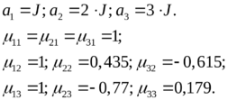 Определим коэффициенты собственных форм, выбрав за единицы измерений амплитуды колебаний первой обобщенной координаты. Тогда: