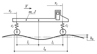 В решении задачи будем использовать уравнение Лагранжа II-го рода. Составим сначала уравнение движения автомобиля. В качестве обобщенных координат примем перемещение центра масс y и угол поворота корпуса автомобиля относительно центра масс .