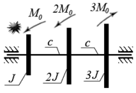 Для гашения крутильных колебаний используют гаситель колебаний Прингла. Определить параметры гасителя m и , при которых амплитуда угловых колебаний диска равна нулю, если жесткость вала, на котором находится диск, равна c.