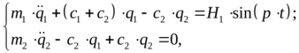 Уравнения движения такой системы можно получить, используя полученную ранее систему уравнений свободных колебаний: