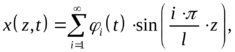 При решении задачи будем считать, что в начальный момент времени t=0 балка находилась в равновесии, то есть и . Опять представим решение в виде произведения двух функций: