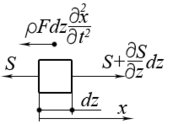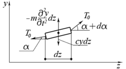 Д ля составления уравнения малых колебаний струны рассмотрим равновесие малого участка струны.