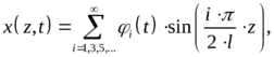 или, учитывая амплитудную функцию для заданного закрепления концов стержня: