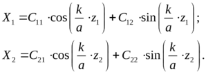 и – площади сечений стержней. Запишем выражения для амплитудных функций: