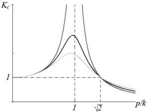При высокочастотных колебаниях, когда , коэффициент передачи силы можно преобразовать следующим образом: