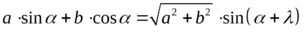 или, используя вышеупомянутое соотношение для суммы синуса и косинуса: