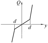 О чевидно, что при установке ограничителей хода зависимость реакции виброизолятора Q от перемещения становится нелинейной, так как жесткость упоров значительно больше жесткости пружин виброизолятора и ее можно представить следующим образом: