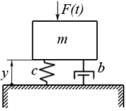 Некоторый механизм массой m является источником возбуждения, а фундамент – защищаемым объектом. Масса фундамента существенно больше массы машины и поэтому его будем считать основанием. Виброизолятор, помещенный между машиной и фундаментом, имеет некоторый приведенный коэффициент жесткости c и приведенный коэффициент демпфирования b.